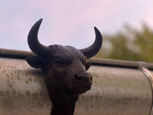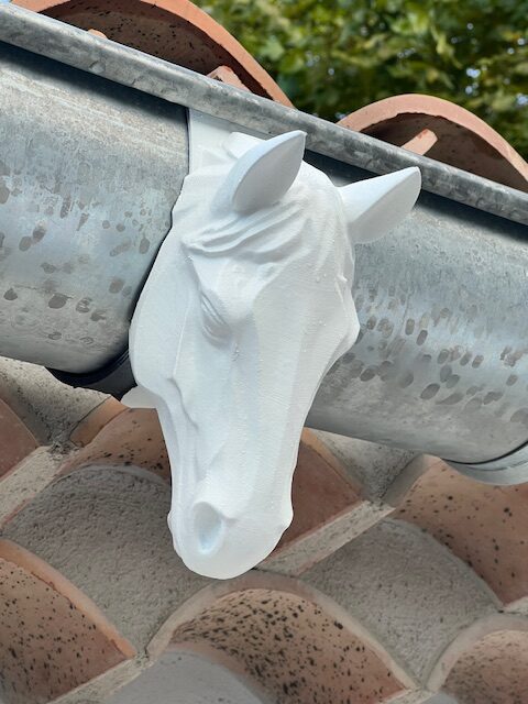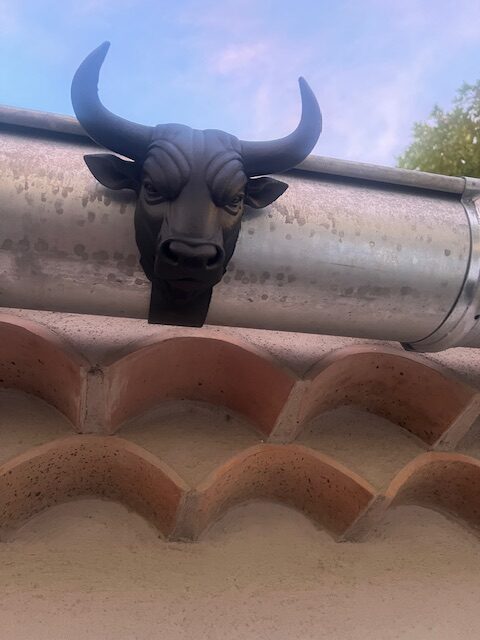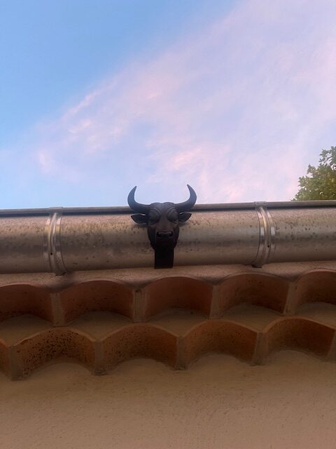 Tête de taureau chimère, à clipper sur demi ronde en 33. Clipser d’abord l’avant sous le pli rond, et basculer la partie arrière et visser si nécessaire l’arrière avec une vis inox en partie haute (pas de fuite ).
